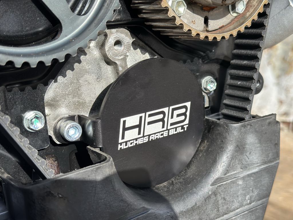 Made from 3mm anodised aluminium, it fits snugly against the factory plastic covers, preventing debris from entering the timing belt area—a known cause of cambelt wear and potential engine failure.