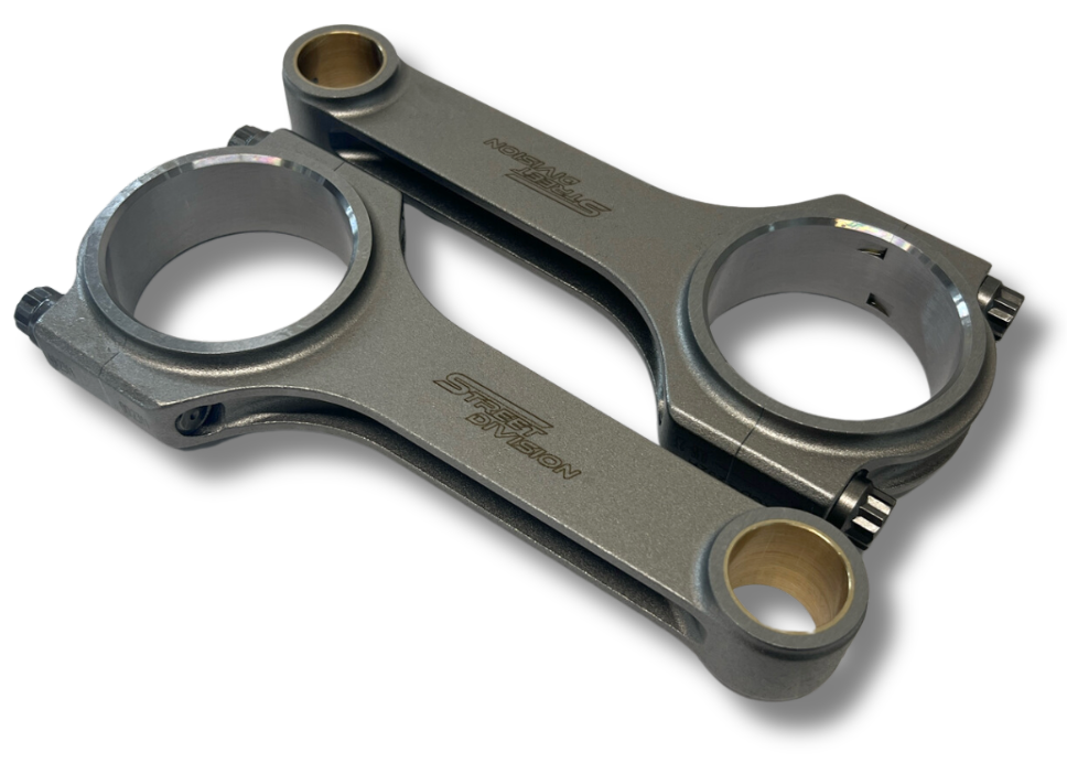 Street Division H-beam connecting rods feature quality ARP 2000 rod bolts and silicone bronze wrist pin bushes to ensure reliability. Street Division H-beam connecting rods are for use in applications that require a strengthened link between the crankshaft and piston but do not require the heavy duty link of an I-beam connecting rod.